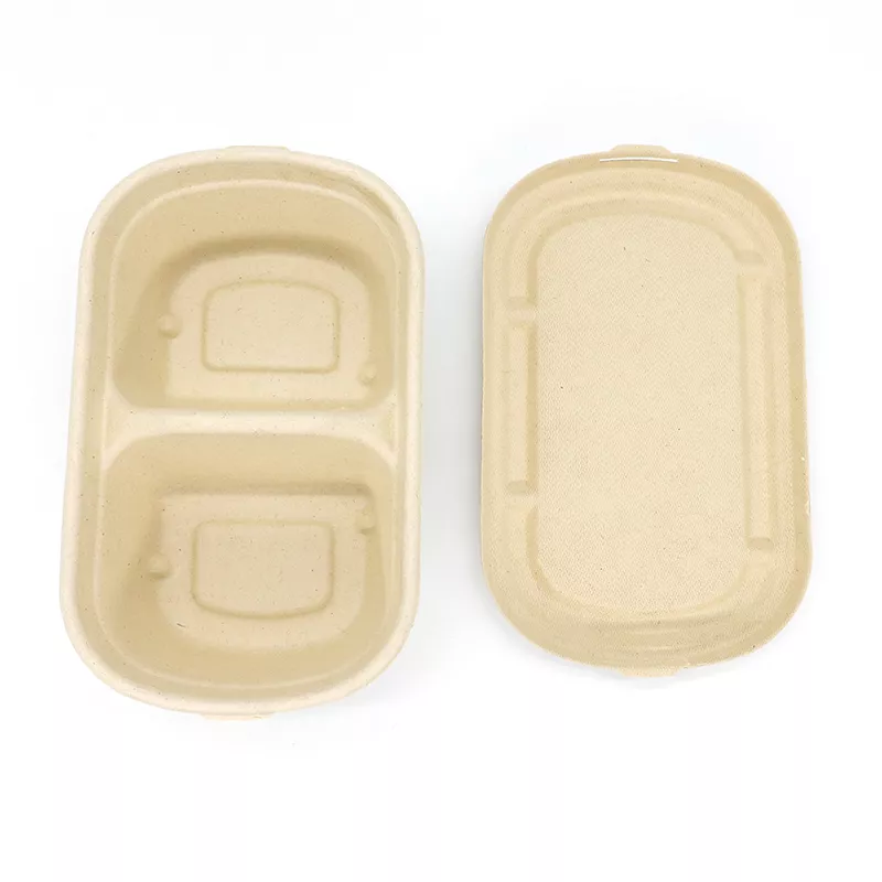 700ml 850ml 1000ml 2 Compartments Bagasse Bento Box with Lid