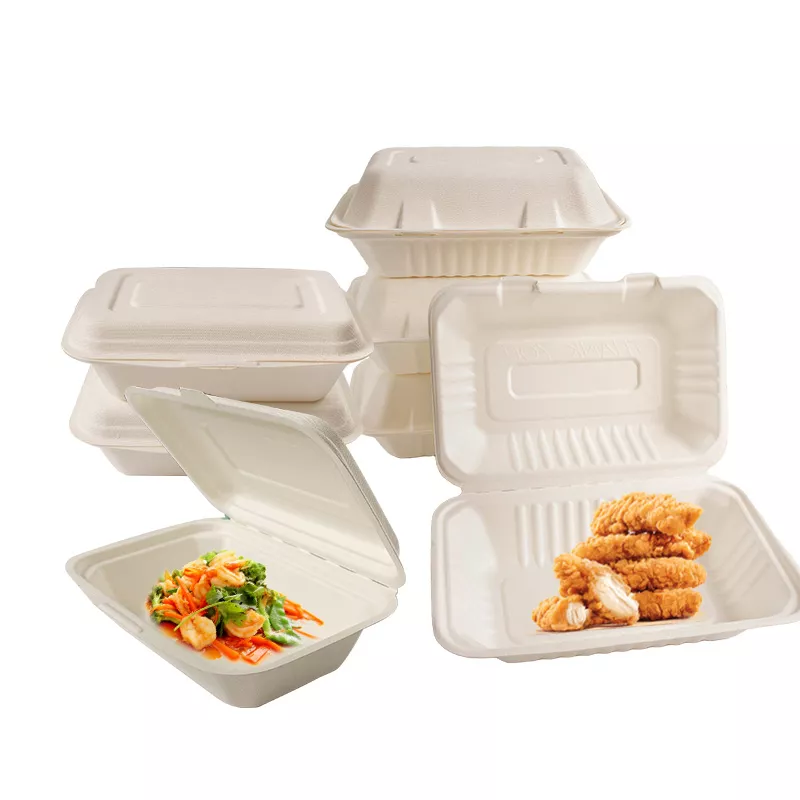 Eco Friendly Compostable 9×6 Inch Sugarcane Clamshell Box