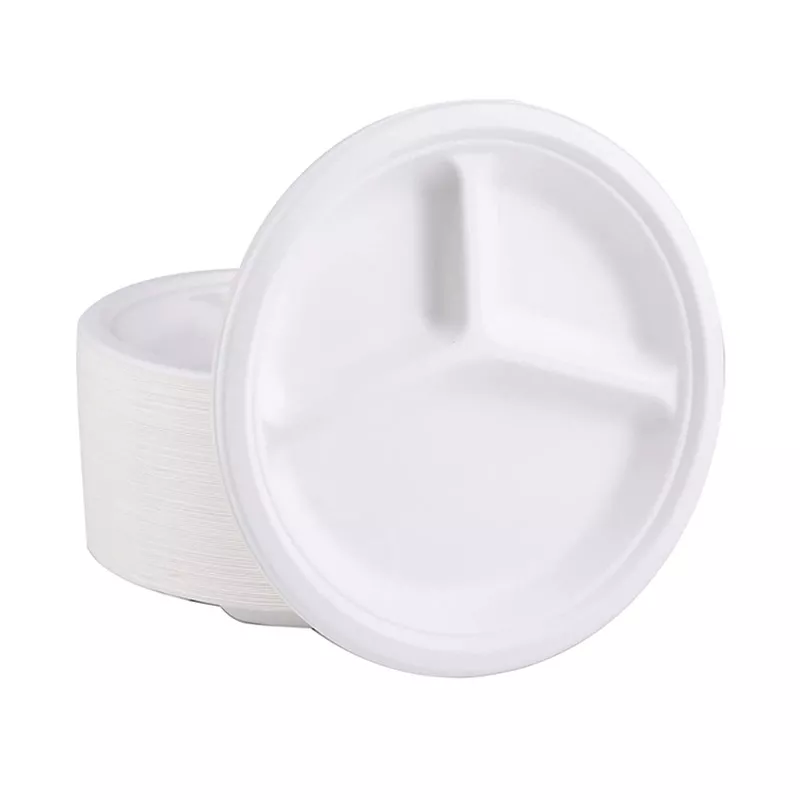 9″ 10″ 3 Compartment Round Sugarcane Pulp Disposable Plates
